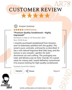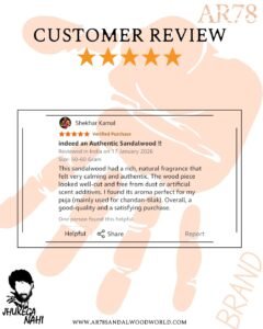 AR78 products are made from 100% pure Indian sandalwood heartwood, sourced sustainably and crafted using traditional techniques. We ensure no additives, synthetic fragrances, or chemicals—just nature’s finest.