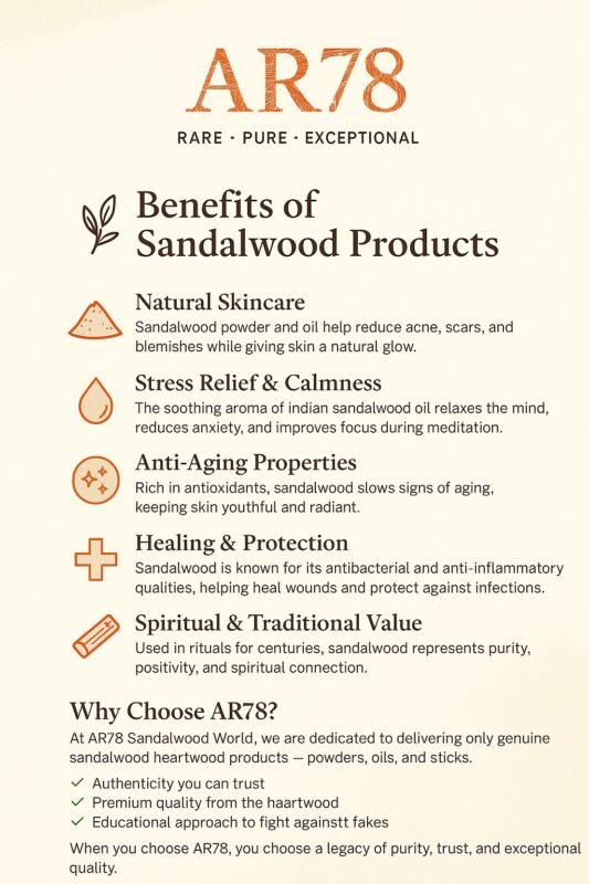 Discover the essence of timeless tradition and wellness. From spiritual rituals to skincare, each AR78 product is crafted with 100% pure sandalwood—ethically sourced, naturally fragrant, and designed to elevate your everyday rituals with grace and authenticity.